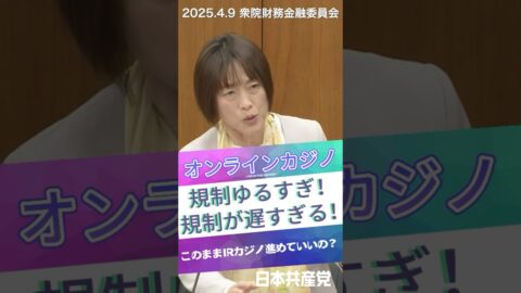 まん延する違法なオンラインカジノ。田村智子委員長が政府の遅すぎる対応に規制の強化を求めました。