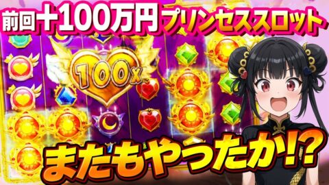 前回+100万円!プリンセス新作スロット3動画連続の大当たり!?